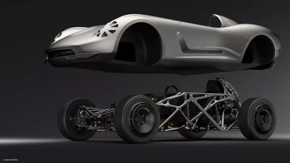 Hackrod的創(chuàng)始人之一是Slade Gardner博士,他是洛克希德馬丁臭鼬廠的前技術(shù)研究員,他是3D打印方法的專家。Speedster車身結(jié)構(gòu)的設(shè)計理念應(yīng)用了空氣動力學(xué),結(jié)構(gòu)簡單的碳纖維外殼,讓人想起經(jīng)典的銀色箭頭。這車輛由特斯拉電動驅(qū)動器驅(qū)動,與內(nèi)燃機相比,該組件的組件少得多且無需手動變速箱,因此更易于集成。車輛的鋁合金底盤很輕,適合3D打印,幾乎不需要焊縫或螺絲。