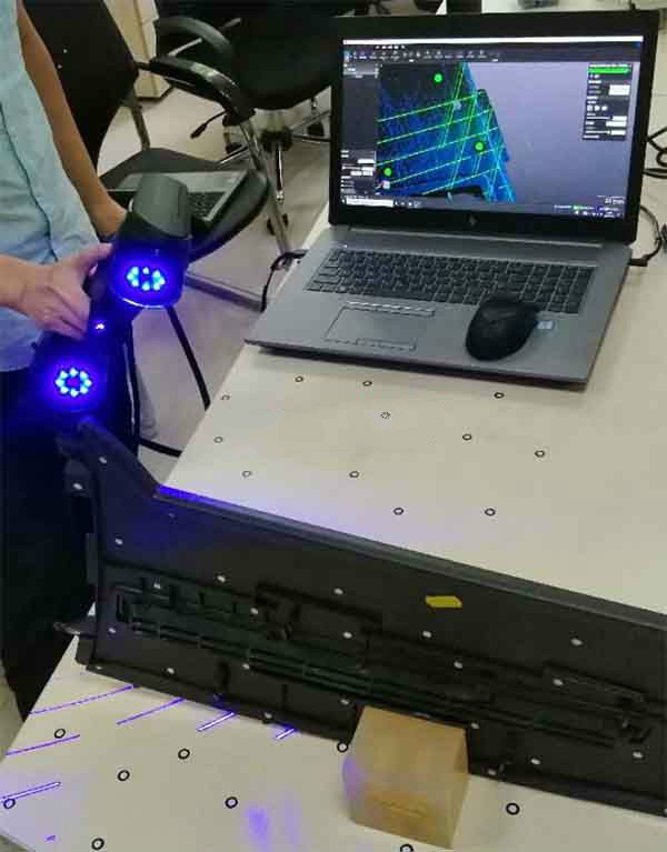 初次掃描耗時10分鐘,通過與原有測量技術(shù)檢測的數(shù)據(jù)結(jié)果比較,此檢測方案的檢測結(jié)果誤差值在0.02mm內(nèi),滿足客戶要求。在汽車配件改裝中,尺寸精度是影響產(chǎn)品質(zhì)量的重要因素,高精度的三維掃描設(shè)備是數(shù)據(jù)精確采集的保障。并且提高檢測效率能縮短汽車改裝周期。